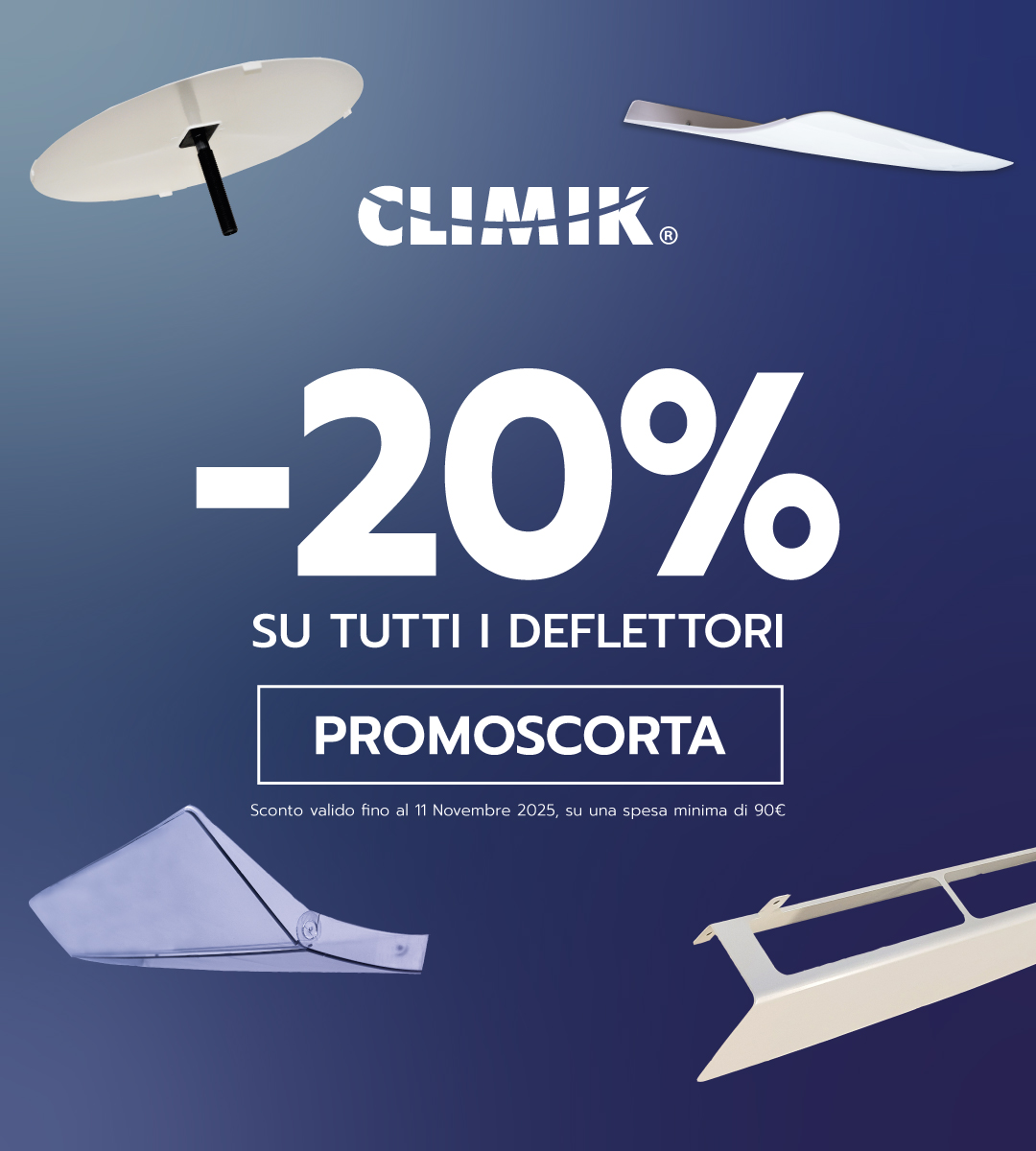 Grazie al suo design (modello depositato) il deflettore per condizionatori fan coil Climik Fan, sposta il getto d’aria gelido del condizionatore verso il soffitto della stanza, l’aria calda dell’ambiente sale facendo scendere quella fredda in modo più omogeneo.